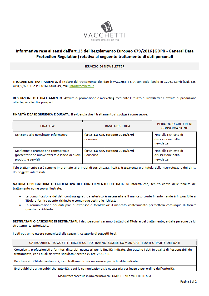Vacchetti S.r.l.Strada Orià 9 / A - 12061 Carrù (CN)